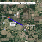Approximately 1.5 miles from the interstate ramps